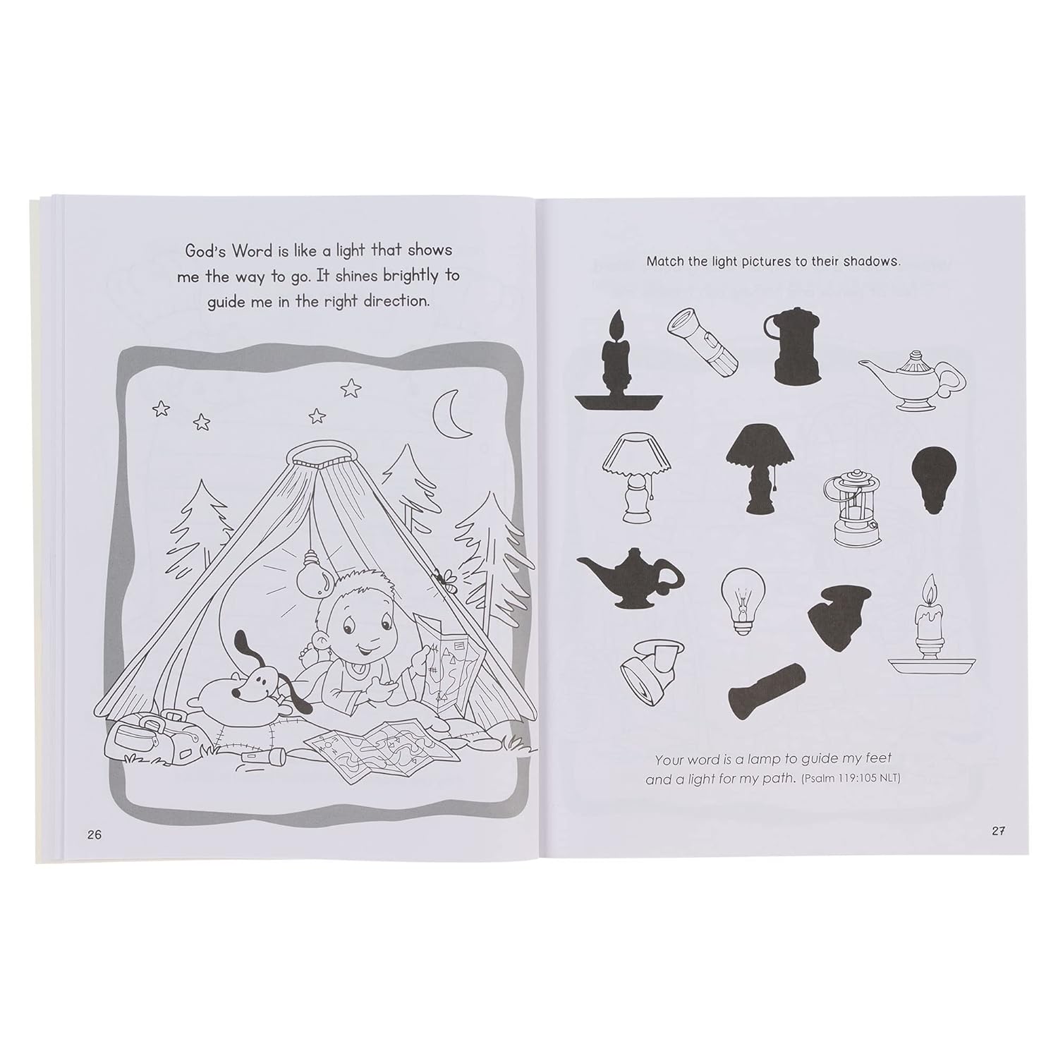 The God's Word is Great Coloring and Activity Book combines key Scripture verses from Psalm 19 with coloring fun and educational activities for boys and girls aged 5 through 8.