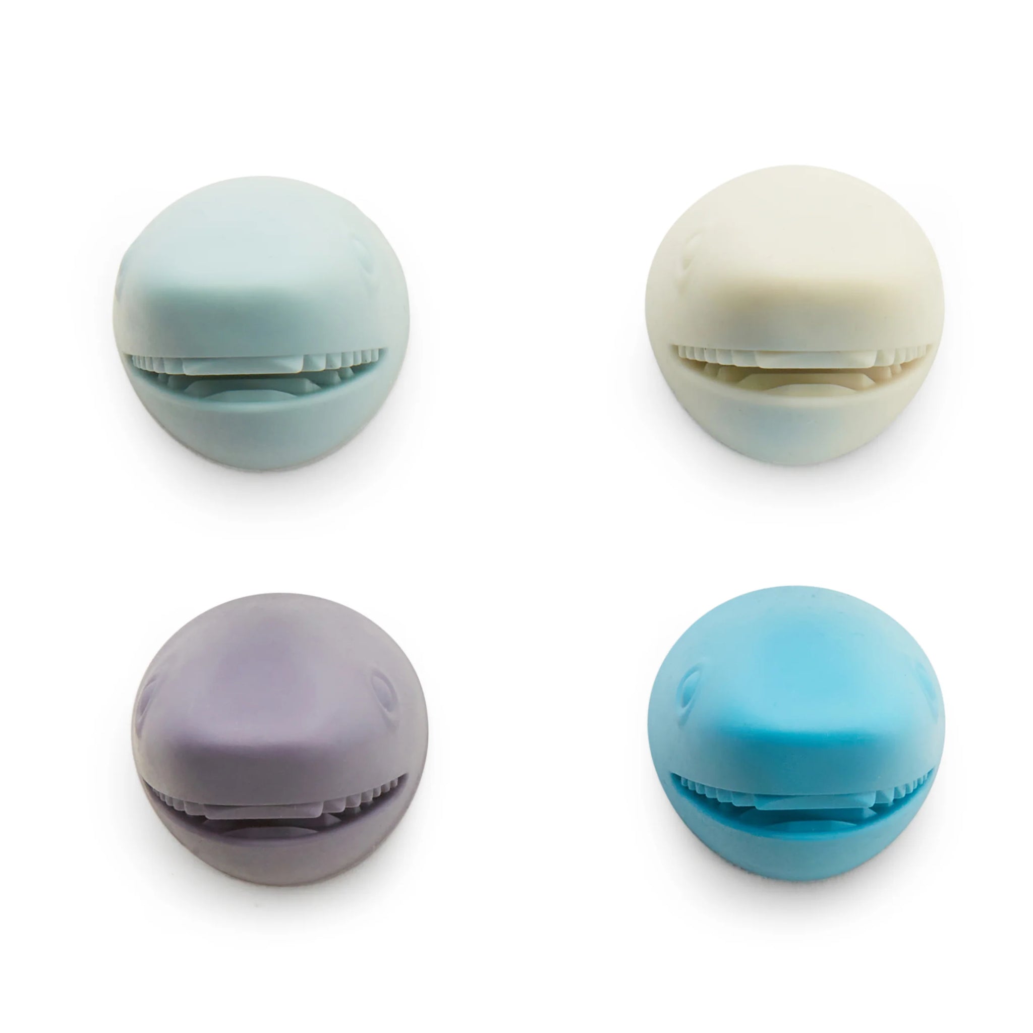 From the depths of the ocean the "Cable Shark" has come to feast on your seaweed tangle of cords. This 4-piece set of cable holders comes in the shape of a shark head and the cords are gripped in the jaws of the shark's mouth. The adhesive stickers hold down the sharks, and are easy to remove, leaving no residue.