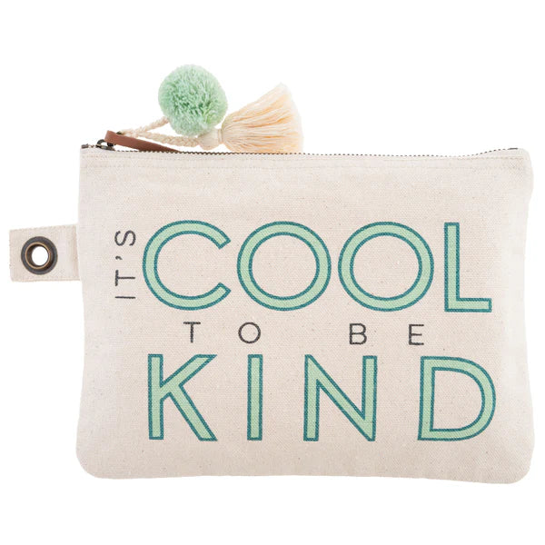 Our Canvas Carry All is perfect for all your smaller items that need organization or a place to stay together with confidence. For work, school, or travel, never lose anything essential again. Made from 100% cotton canvas material with a wipeable polyester lining to ensure easy cleaning. Store all your makeup essentials without worry in one of our 9 designs. This zipper pouch includes a colorful pompom and tassel attached to the zipper pull.