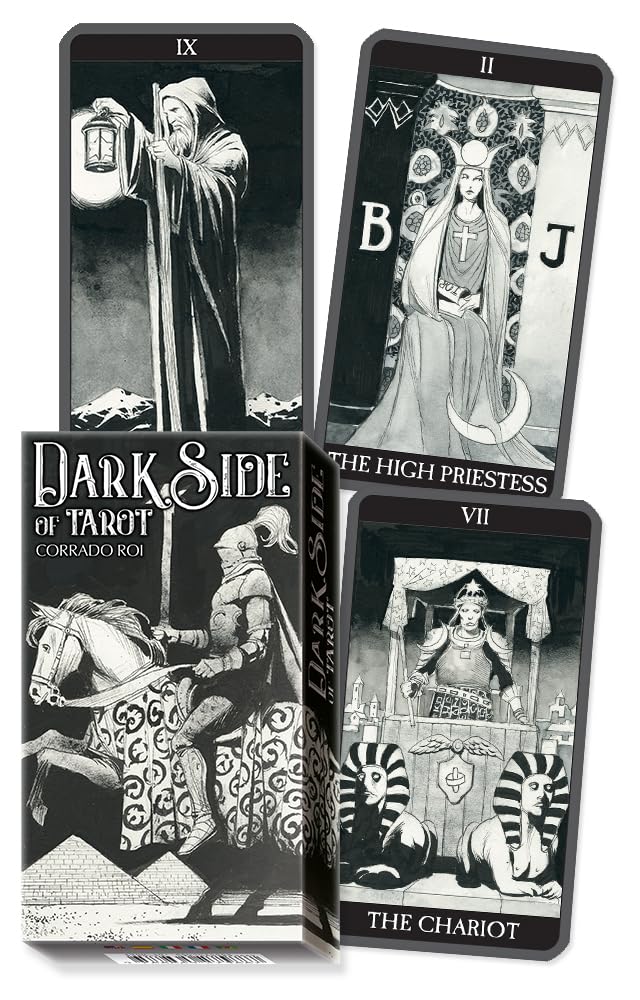 This deck-only version of the bestselling Dark Side of Tarot uses striking black and white to inspire transformative readings. Based on the Rider-Waite-Smith system, Corrado Roi's masterful illustrations help you uncover answers you didn't even know you needed. Each card flip will reveal secrets hiding in the shadows—and in yourself. With monochrome magnificence, this deck shows you how to shift perspectives and dance with your own darkness.