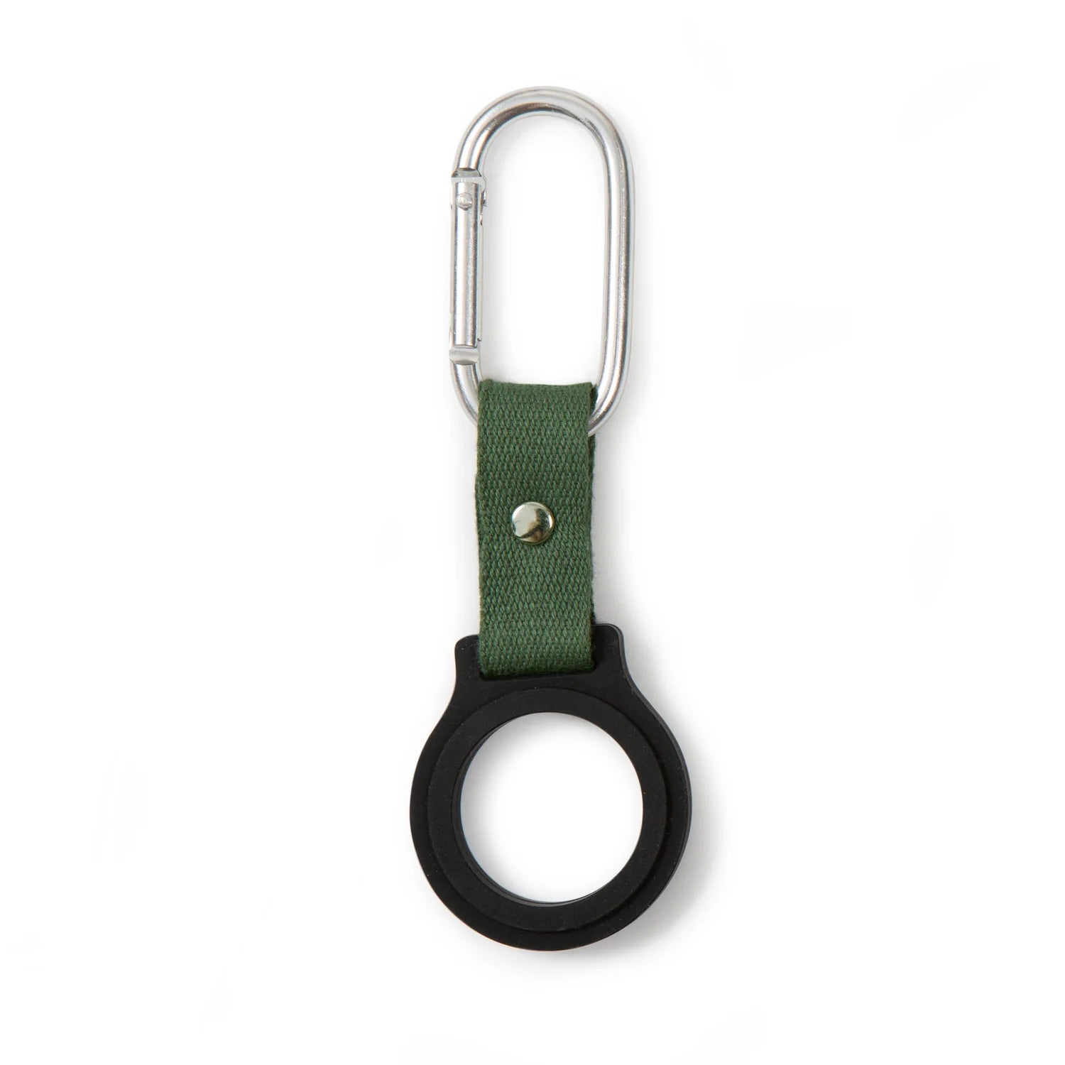 The carabiner clip easily attaches to your backpack, gym bag, or belt loop while the silicone bottle holder stretches to fit most lid sizes.