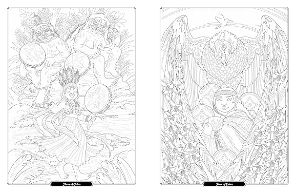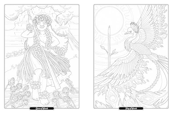 Tarot of the Divine Coloring Book presents each tarot card from the Tarot of the Divine deck, with fairytale characters from around the world serving as the Major and Minor Arcana. The Danish fable's naive Little Mermaid represents The Fool, China's Beauty and the Beast are The Lovers, the Maori legend of Hinemoa and Tutanekai serve as The World, and more.