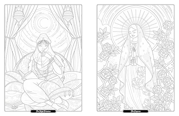 Tarot of the Divine Coloring Book features bold black-and-white versions of Yoshi Yoshitani's delightfully intricate illustrations, perfect for putting colored pens or pencils to paper and bringing the mythical tarot archetypes to life with your own creativity.